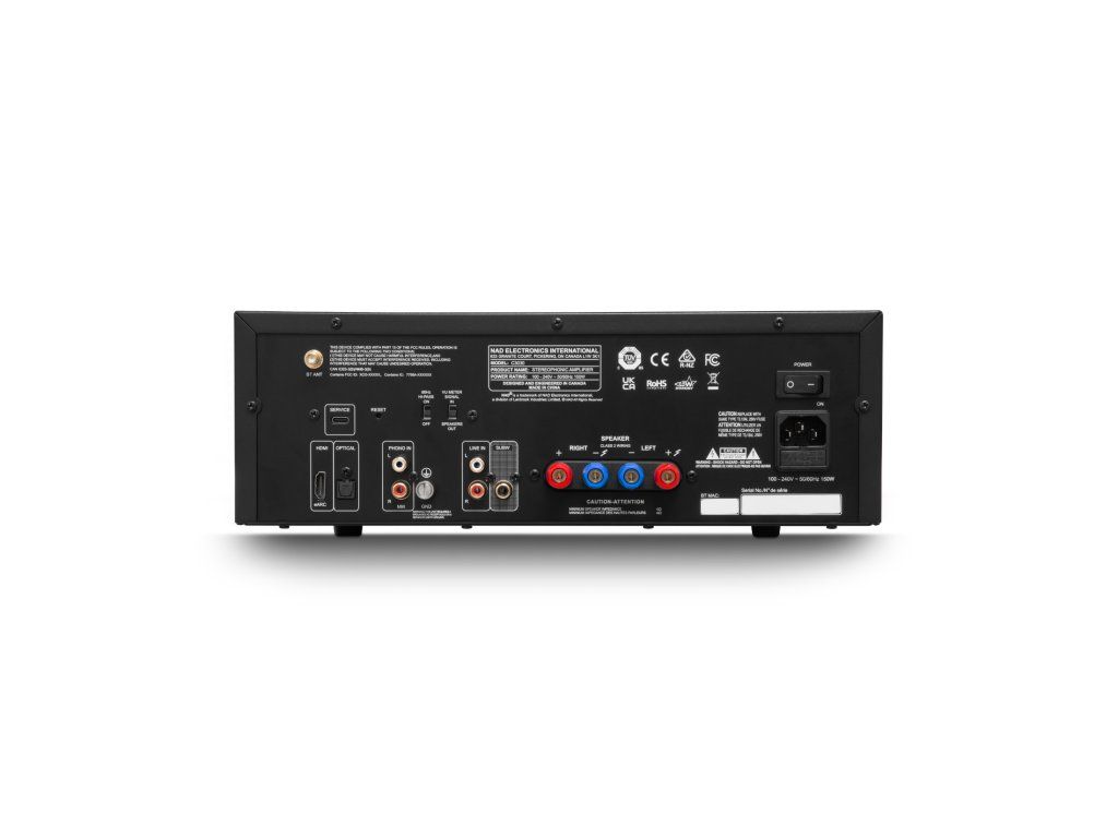 | Vstupy: | 1 x stereo linkový RCA, 1 x stereo vstup pre gramofón, 1 x digitálny optický TOSLINK, 1 x HDMI eARC, 1 x USB-C (len pre servisné účely) |