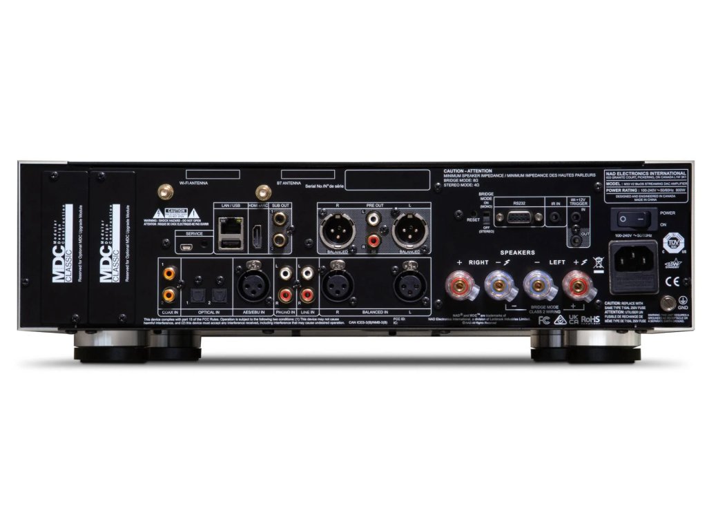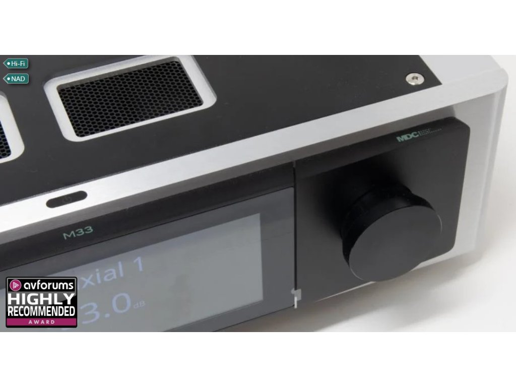 Vo svojej štandardnej podobe je NAD M33 v2 už tak veľmi komplexný s celou radou vstupov / výstupov vrátane. XLR vstupov, BluOS streamerom, korekciou zvuku Dirac, HDMI eARC vstupom a ďalšími už plne integrovanými funkciami a vlastnosťami. Splní tak požiadavky i tých najnáročnejších používateľov. Aby sa minimalizovalo riziko budúceho zastarávania, prichádza NAD M33 s dvoma slotmi MDC, ktoré umožňujú ďalšiu expanziu. Spoločnosť NAD predstavila platformu MDC pred desiatimi rokmi a umožnila aktualizáciu produktov novými technológiami, ktoré v dobe uvedenia produktov vôbec neexistovali.